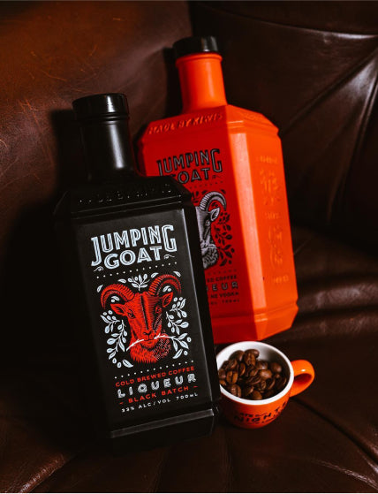 JUMPING GOAT IS A COLD BREWED COFFEE LIQUOR MADE USING THE FINEST QUALITY, BATCH ROASTED COFFEE BEANS, AND A DAMN LOT OF THEM. SUGAR AND SPICES AND NEW ZEALAND SPRING WATER GIVE THE FINAL PRODUCT ITS UNIQUELY SMOOTH TASTE.